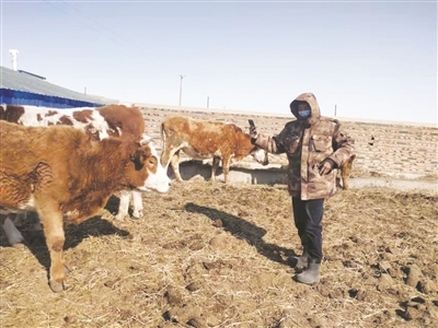 安华农业保险股份有限公司吉林省通榆县支公司用实际行动贯彻落实中央一号文件精神,明确两条底线任务,牢记安华保险企业服务“三农”宗旨,不忘初心使命,助推乡村振兴。春节过后,该公司农险部工作人员起早贪晚进农家,在全县承包区域内,使用快捷、科学的牛脸识别APP软件,为200多户养殖户的4826头肉牛上了保险,给广大养牛户吃了定心丸。图为安华保险公司工作人员为牛刷脸上保险。 李秀军摄