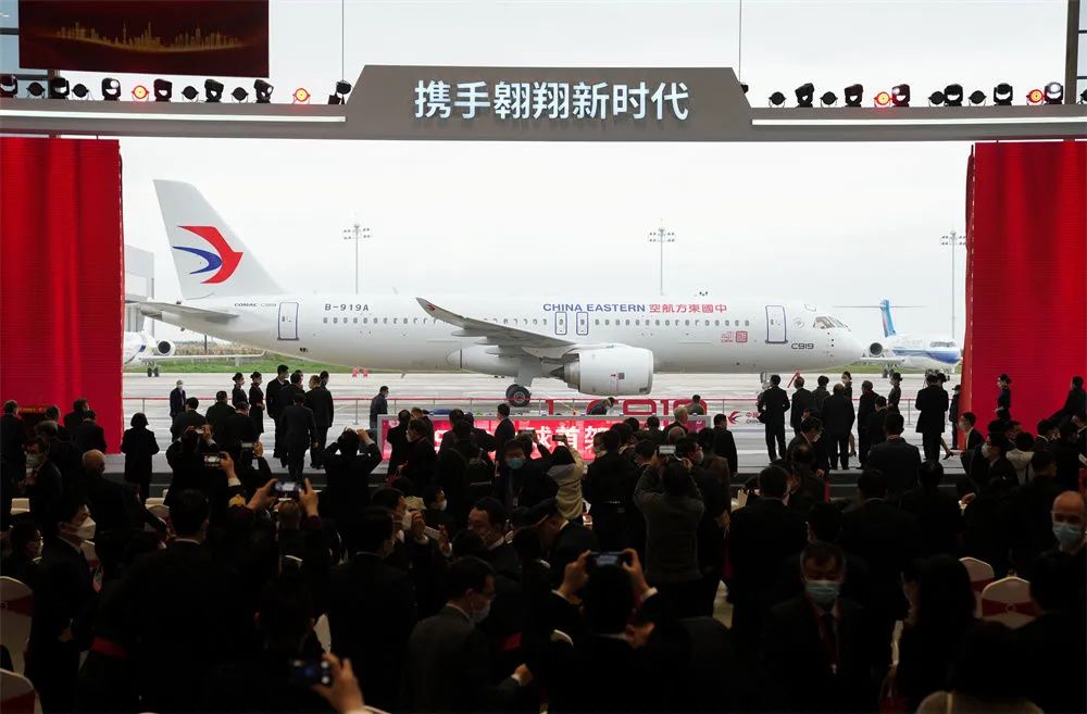 这是国产大飞机C919交付全球首家用户东航的仪式现场(2022年12月9日摄)。新华社记者 丁汀 摄