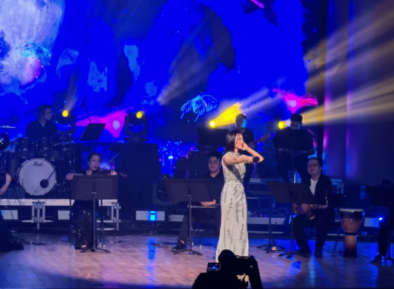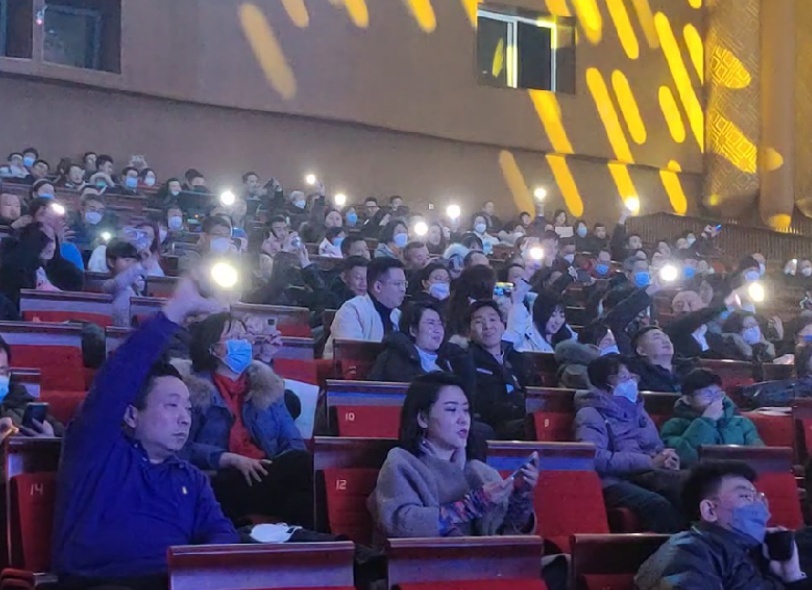 一段段旋律,唤醒耳朵,流动到心里,观众们纷纷打开手机闪光灯,随着节奏摇动,点点星光汇成灯海。音乐厅里,乐符化作荡漾的星海。