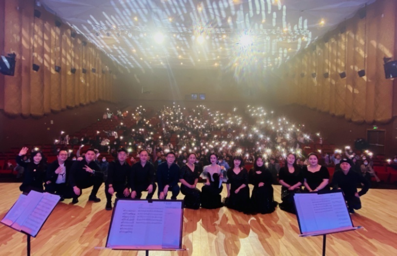 总有一段旋律让人着迷,总有一句歌词拨动心弦……作为长影乐团演出的“大本营”,长影音乐厅颇有这样的魅力让人沉醉其中。 “我们俩 谈着心 唱着歌,在那一轮夕阳下 看晚霞;我们俩 轻轻地 拍着手,醉在淡淡月光下 弹吉他”……轻快跳跃的节奏、极具画面感和诗意的歌词,瞬间暖到心里。一首上世纪80年代的歌曲《爱像一首歌》,在青年歌手晓枫的演绎下,美得让观众沉醉。